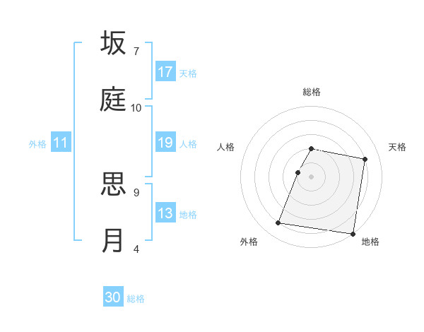 坂庭 思月さんの総格は30画の2点!