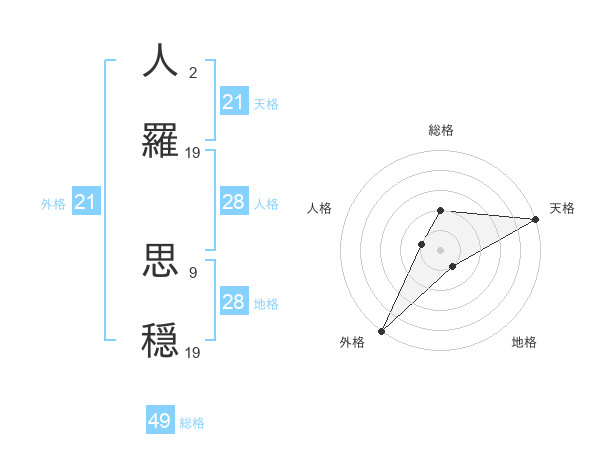 人羅 思穏さんの天格は21画の5点!
