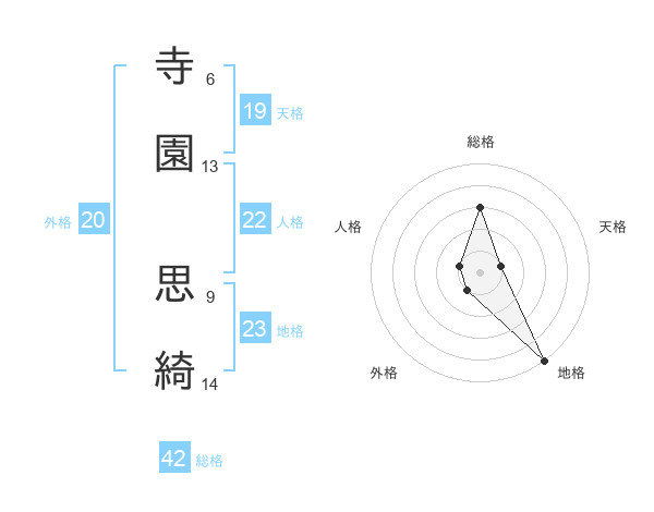 寺園 思綺さんの地格は23画の5点!