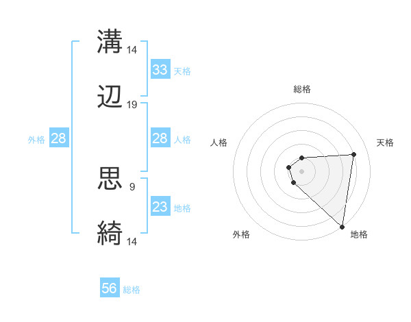 溝辺 思綺さんの外格は28画の1点!