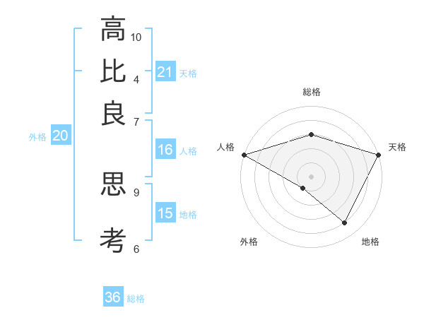 高比良 思考さんの天格は21画の5点!