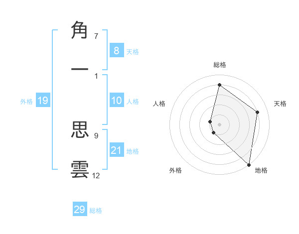角一 思雲さんの総格は29画の4点!