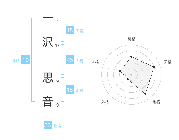 一沢 思音さんの天格は18画の4点!