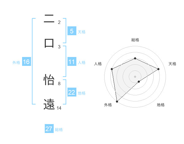 二口 怡遠さんの外格は16画の5点!