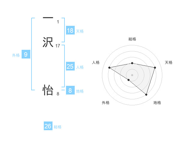 一沢 怡さんの総格は26画の2点!