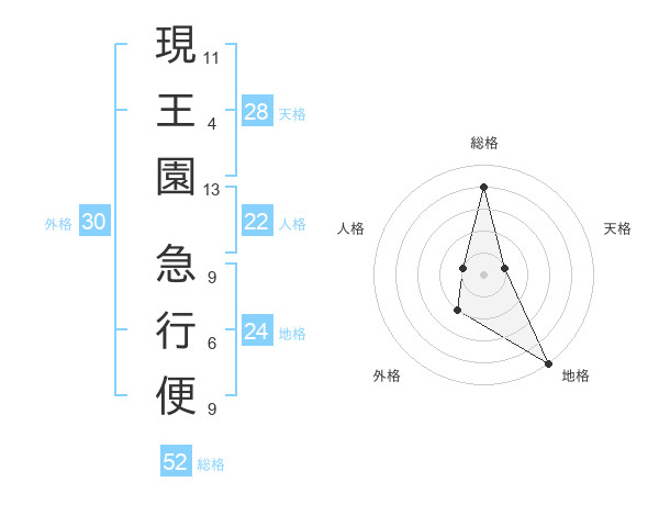 現王園 急行便さんを姓名の画数から五運を鑑定