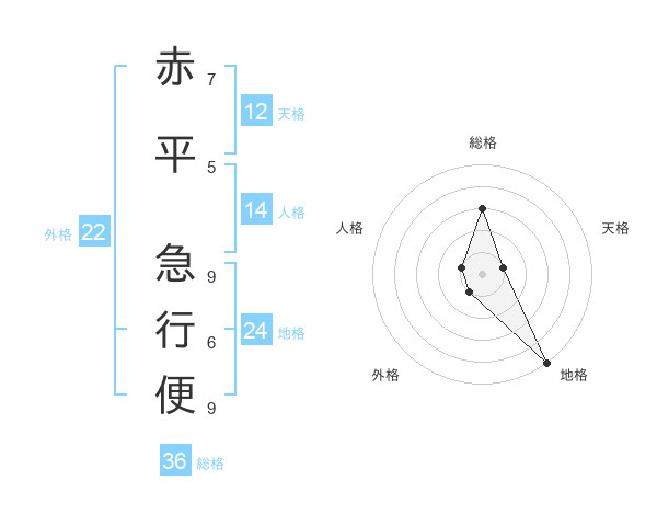 赤平 急行便さんを姓名の画数から五運を鑑定