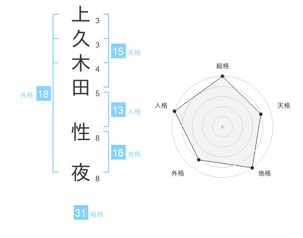 上久木田 性夜さんの総格は31画の5点!