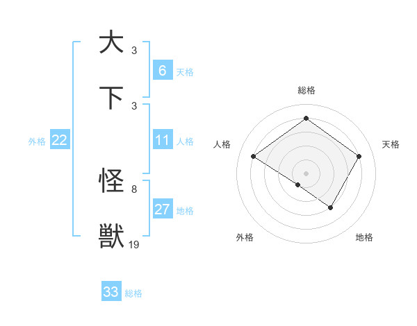 大下 怪獣さんを姓名の画数から五運を鑑定