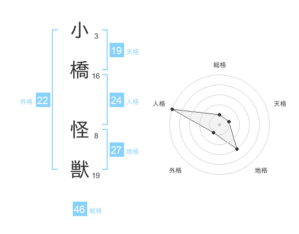 小橋 怪獣さんの総格は46画の1点!