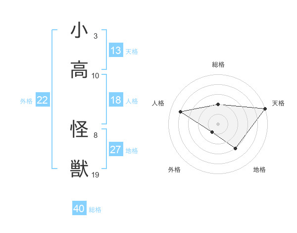 小高 怪獣さんの天格は13画の5点!