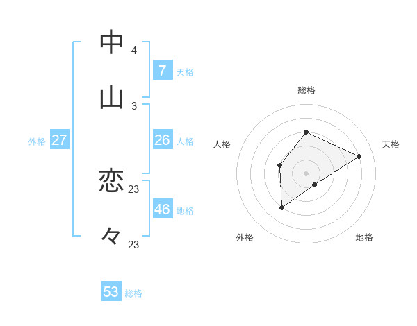 中山 恋々さんの外格は27画の3点!