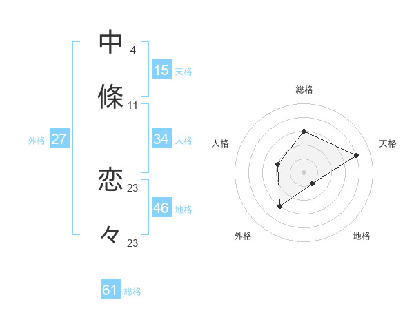 中條 恋々さんの総格は61画の3点!