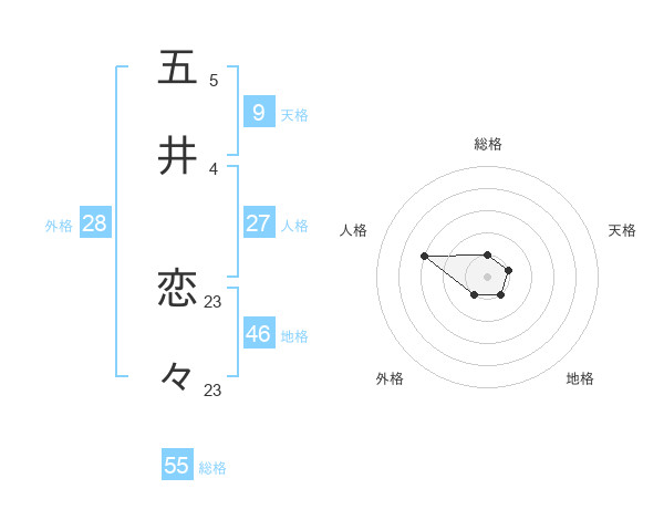 五井 恋々さんの総格は55画の1点!
