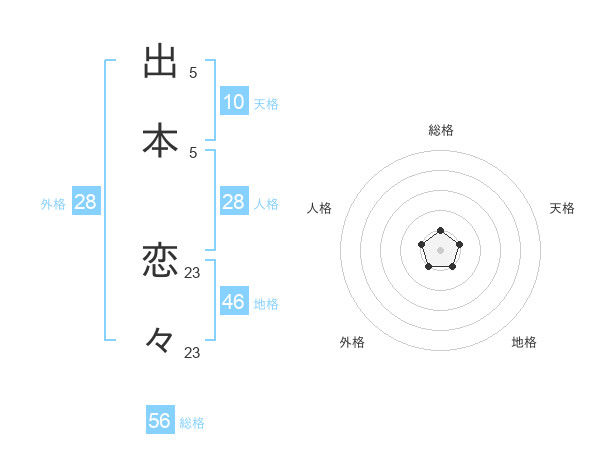 出本 恋々さんの総格は56画の1点!