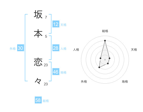 坂本 恋々さんを姓名の画数から五運を鑑定