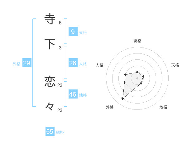 寺下 恋々さんを姓名の画数から五運を鑑定