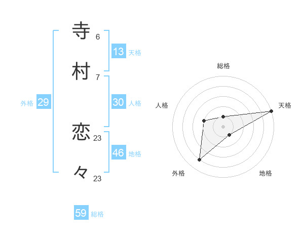 寺村 恋々さんの天格は13画の5点