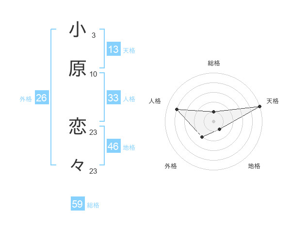 小原 恋々さんの天格は13画の5点!