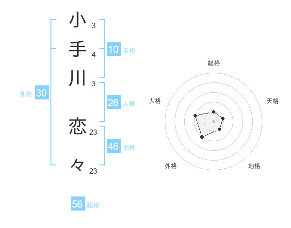 小手川 恋々さんを姓名の画数から五運を鑑定