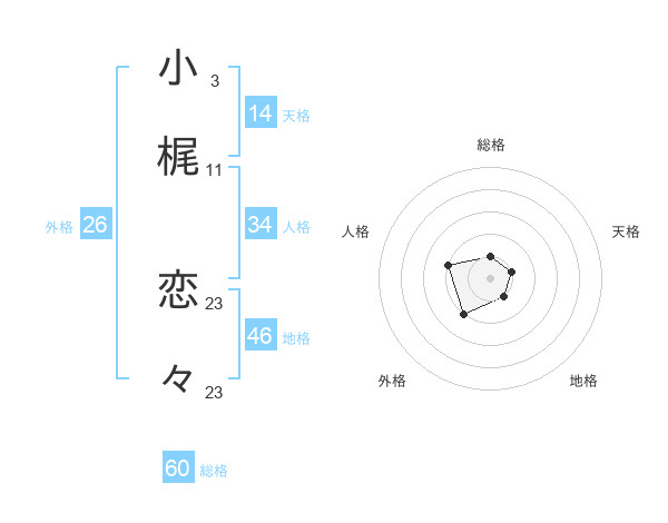 小梶 恋々さんを姓名の画数から五運を鑑定