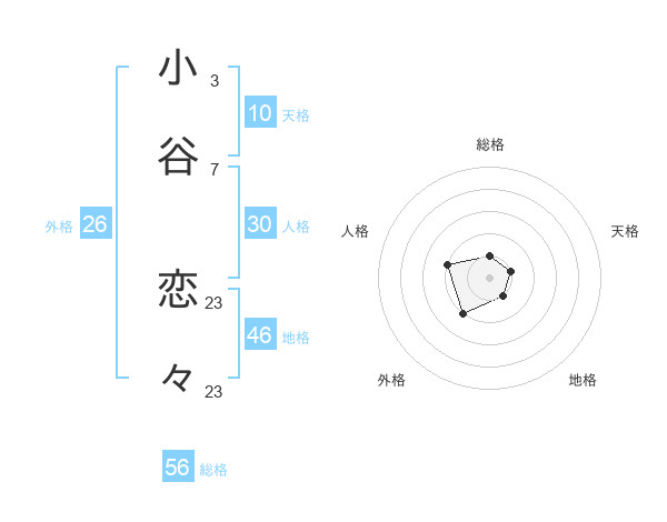 小谷 恋々さんを姓名の画数から五運を鑑定