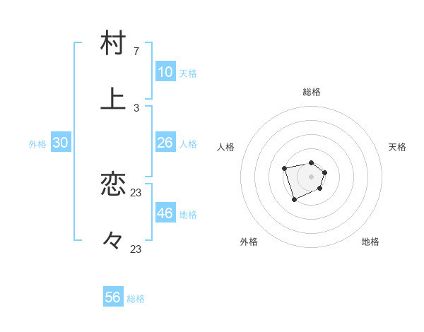 村上 恋々さんの地格は46画の1点!