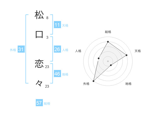 松口 恋々さんの総格は57画の4点!