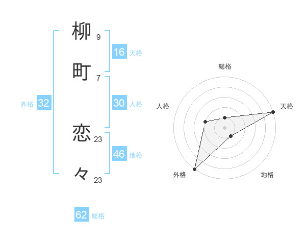 柳町 恋々さんを姓名の画数から五運を鑑定