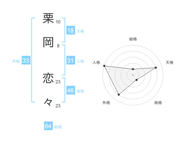 栗岡 恋々さんの総格は64画の1点!