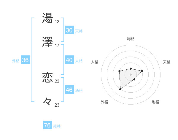 湯澤 恋々さんを姓名の画数から五運を鑑定