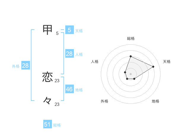 甲 恋々さんの総格は51画の3点!