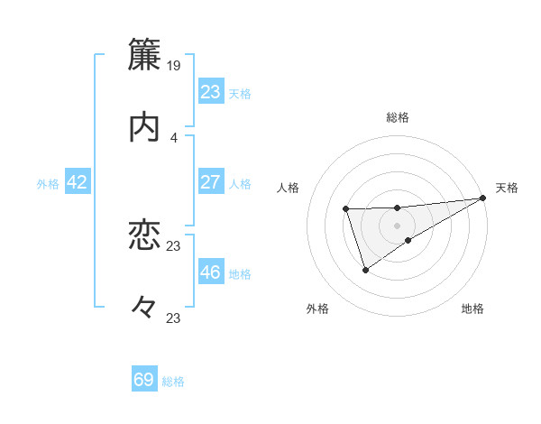 簾内 恋々さんを姓名の画数から五運を鑑定