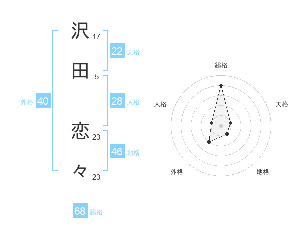 沢田 恋々さんを姓名の画数から五運を鑑定