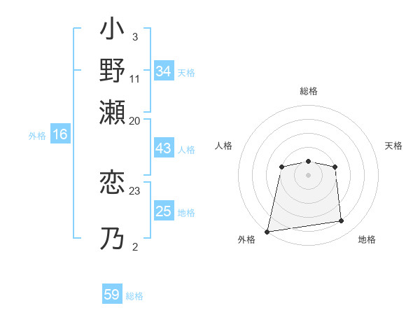 小野瀬 恋乃さんの総格は59画の1点