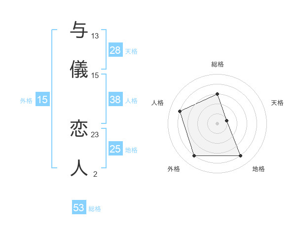与儀 恋人さんの外格は15画の4点!