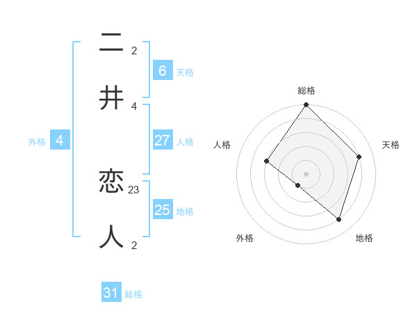 二井 恋人さんの総格は31画の5点!