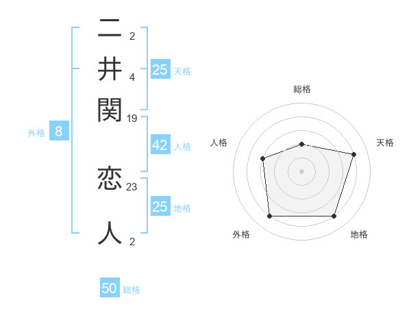 二井関 恋人さんを姓名の画数から五運を鑑定