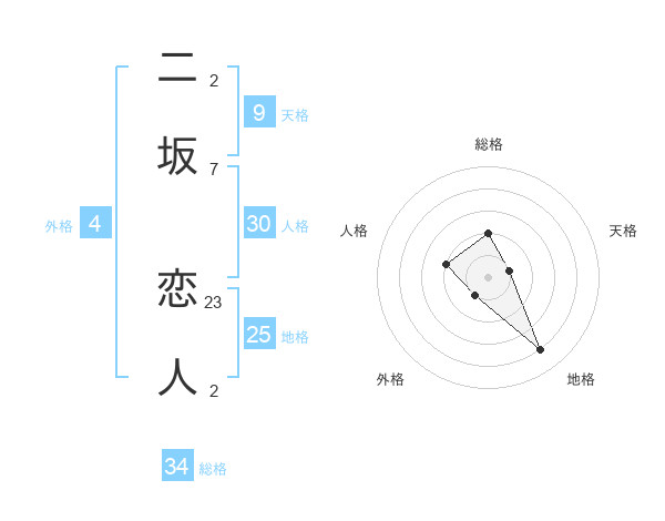 二坂 恋人さんを姓名の画数から五運を鑑定