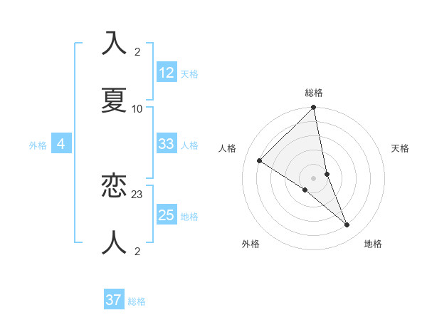 入夏 恋人さんを姓名の画数から五運を鑑定