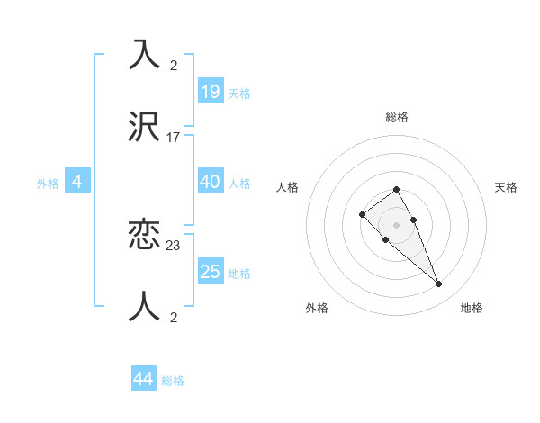 入沢 恋人さんを姓名の画数から五運を鑑定