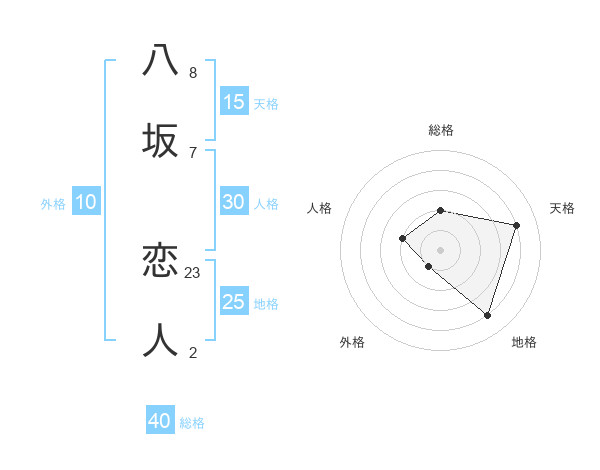 八坂 恋人さんを姓名の画数から五運を鑑定
