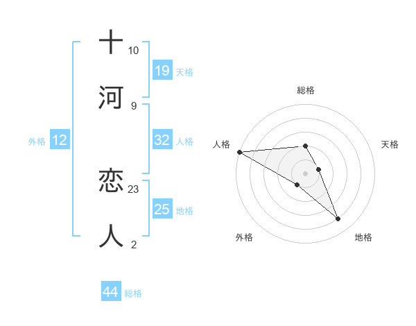 十河 恋人さんの総格は44画の2点!