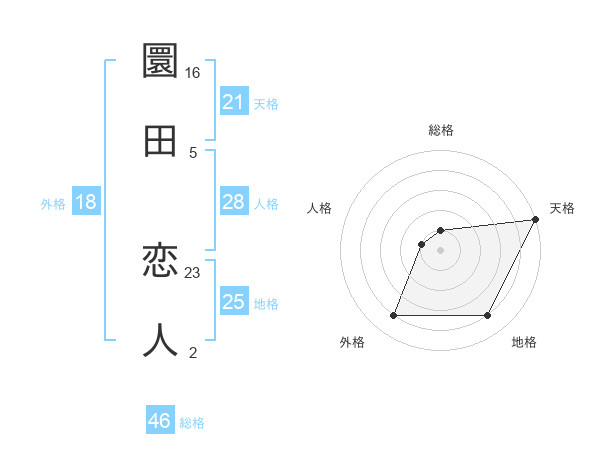 圜田 恋人さんを姓名の画数から五運を鑑定