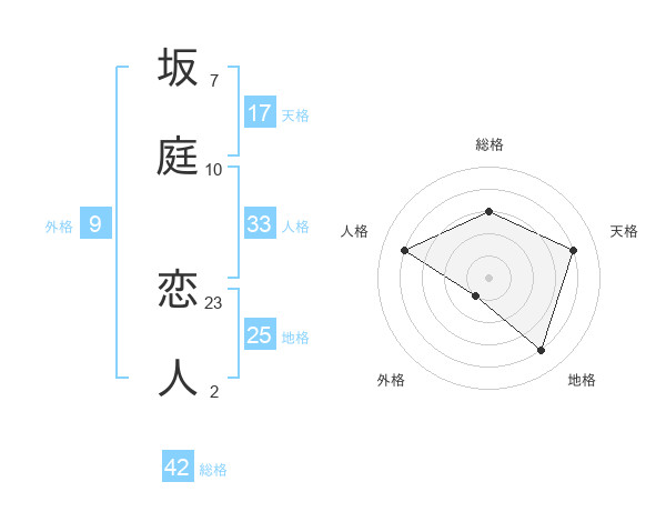 坂庭 恋人さんを姓名の画数から五運を鑑定