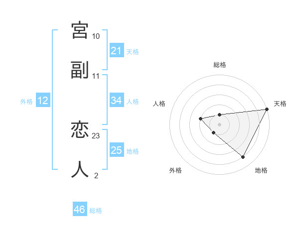 宮副 恋人さんの総格は46画の1点!