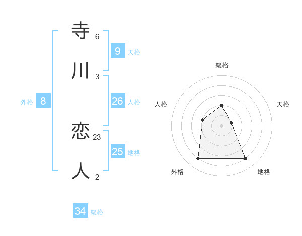 寺川 恋人さんの総格は34画の2点!