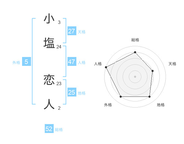 小塩 恋人さんを姓名の画数から五運を鑑定