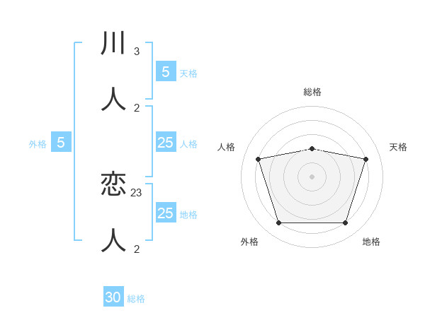 川人 恋人さんの総格は30画の2点!