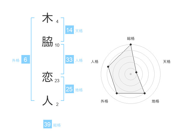木脇 恋人さんの外格は6画の4点!